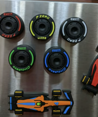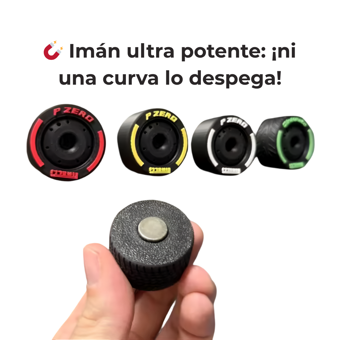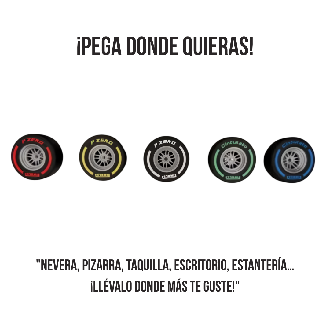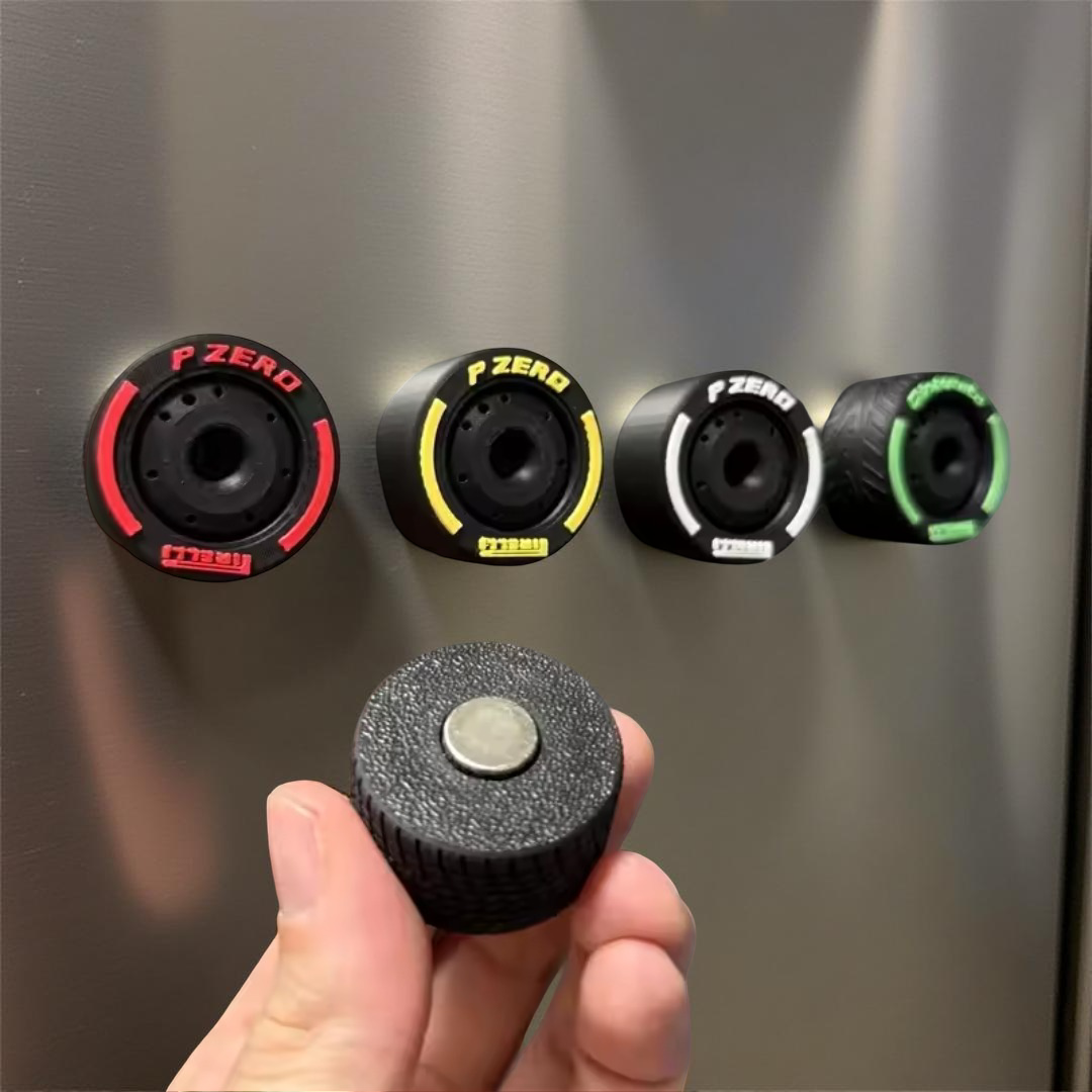 Set de 5 Imanes de Neumáticos F1 Diseño Realista + Súper Imán Trasero